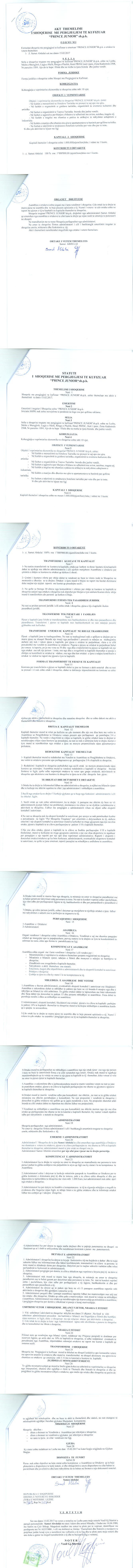 | Emërtime të tjera Tregtare: | "PRINCE JUNIOR" shpk |