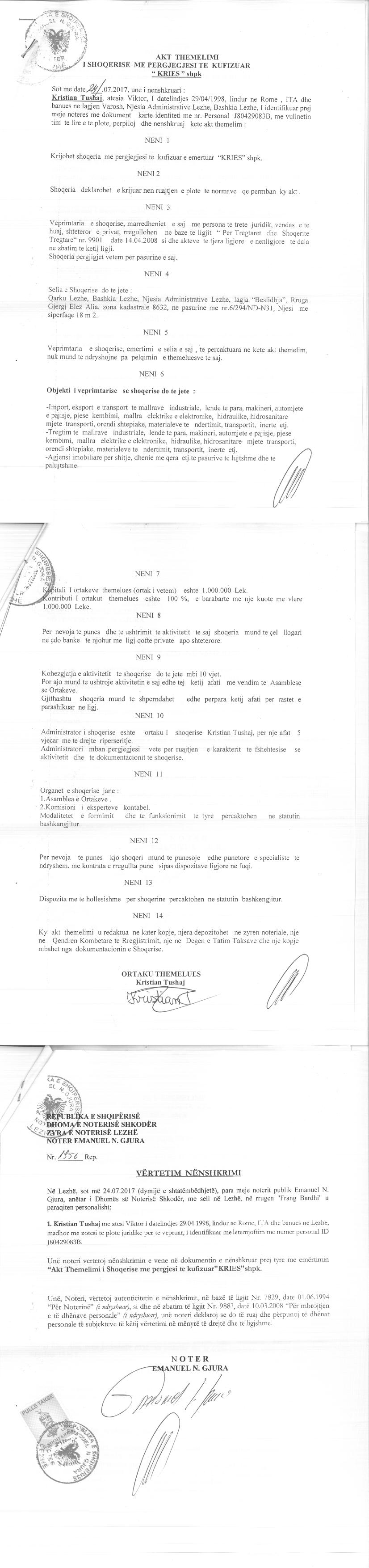→ Ekstrakt Historik i Regjistrit Tregtar, date 21.01.2023 → Akt themelimi i Shoqerise |