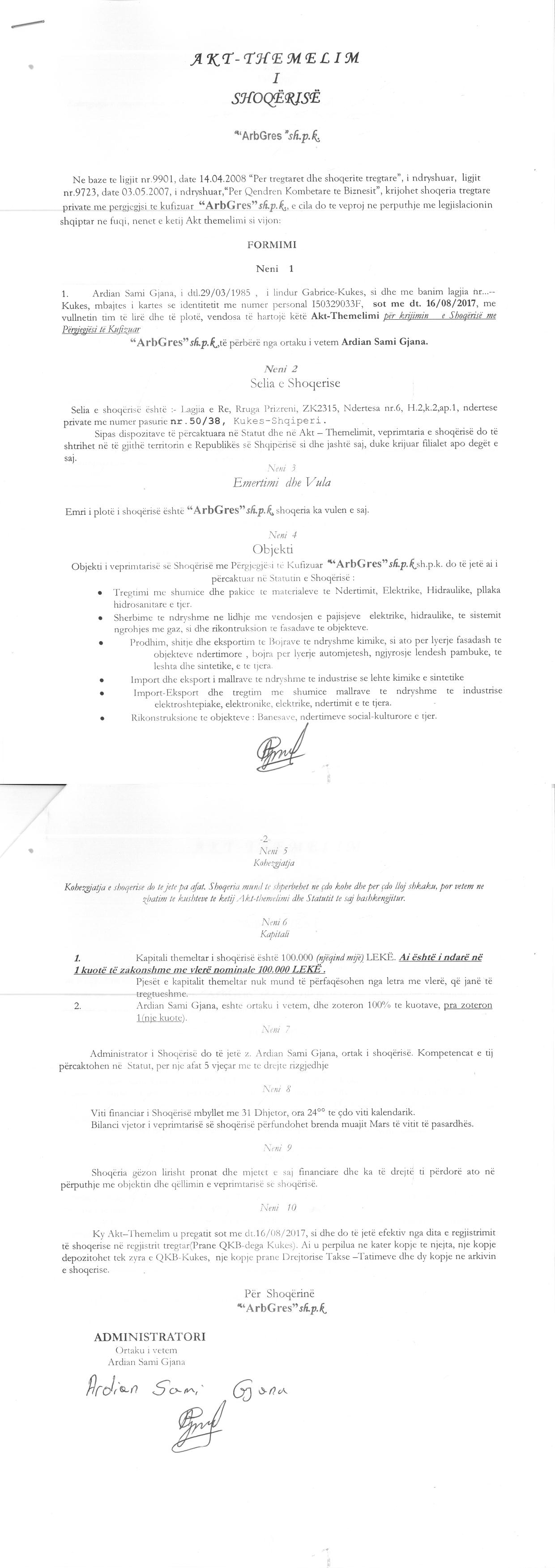→ Ekstrakt Historik i Regjistrit Tregtar date 22.10.2024 → Akt themelimi i Shoqerise |