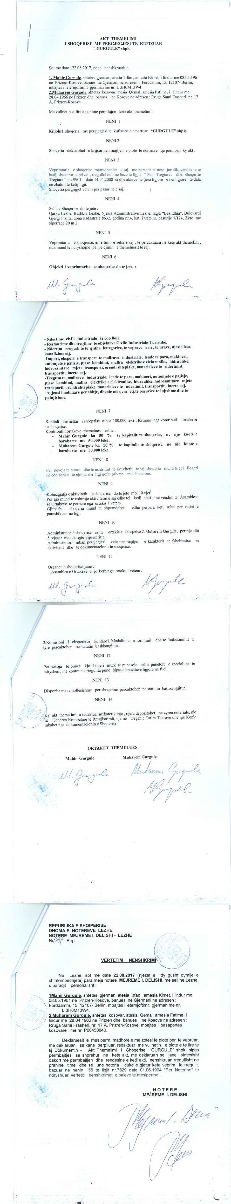 → Ekstrakt Historik i Regjistrit Tregtar date 25.10.2024 → Akt themelimi i Shoqerise → Ekstrakt Historik i Regjistrit te Pronareve Perfitues, date 25.10.2024 |