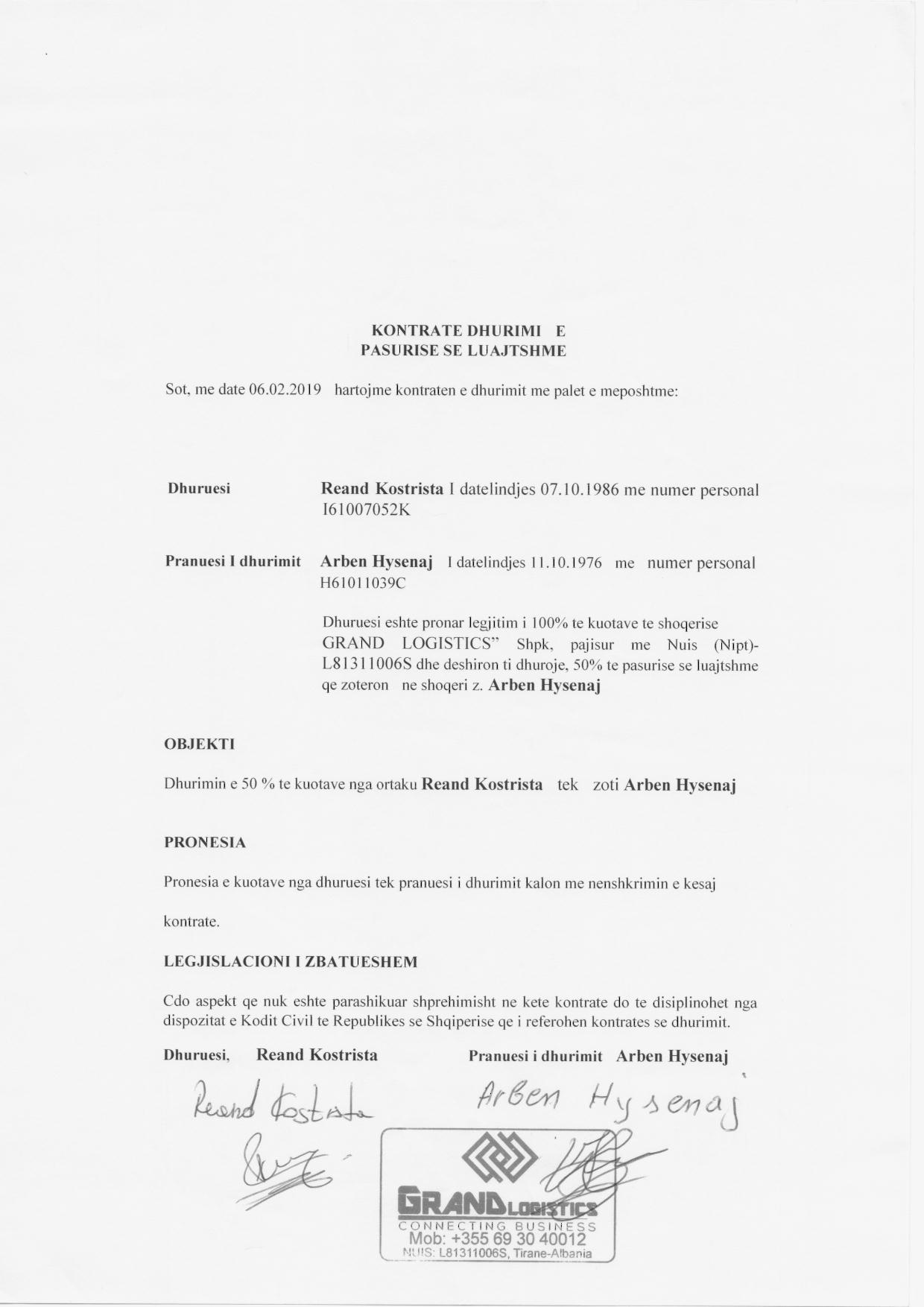 | Emërtime të tjera Tregtare: | GRAND LOGISTICS |