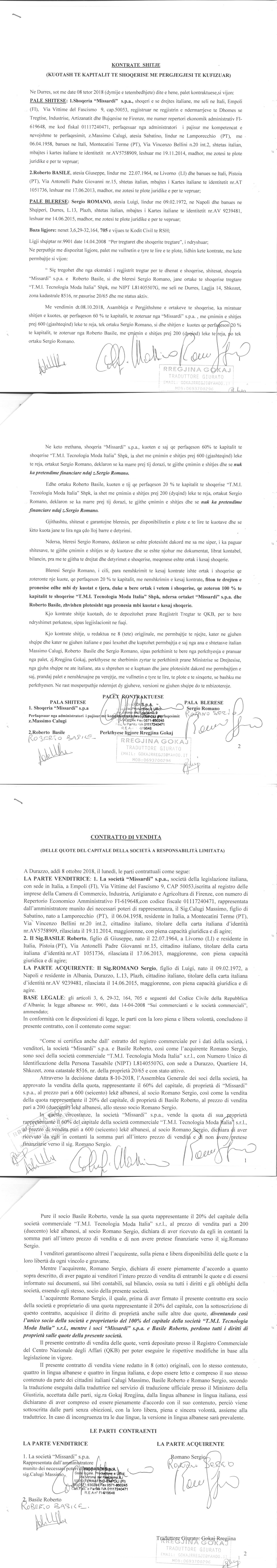 → Ekstrakt Historik i Regjistrit Tregtar date 29.08.2022 → Akt themelimi i Shoqerise → Kontrate Shitje Kuotash date 08.10.2018 |