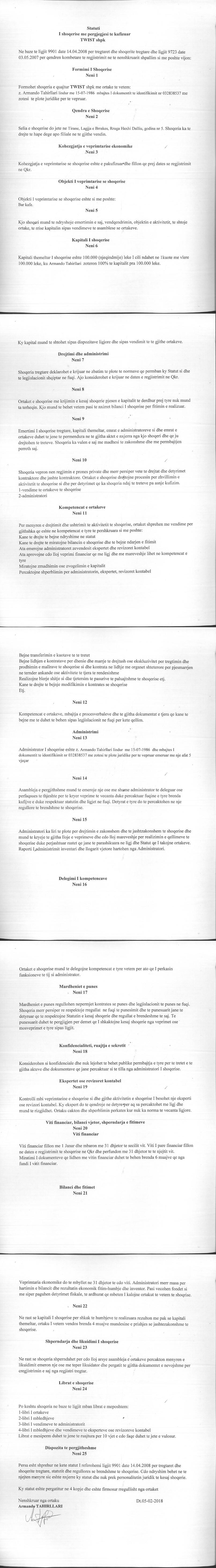 → Ekstrakti Historik I Regjistrit Tregtar date 14.10.2020 → Statuti I Shoqerise |