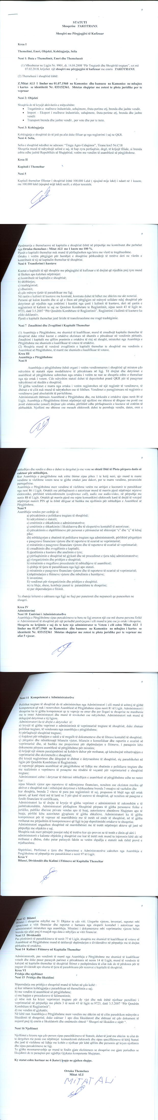 → Ekstrakti Historik I Regjistrit Tregtar date 26.11.2020 → Statuti I Shoqerise |