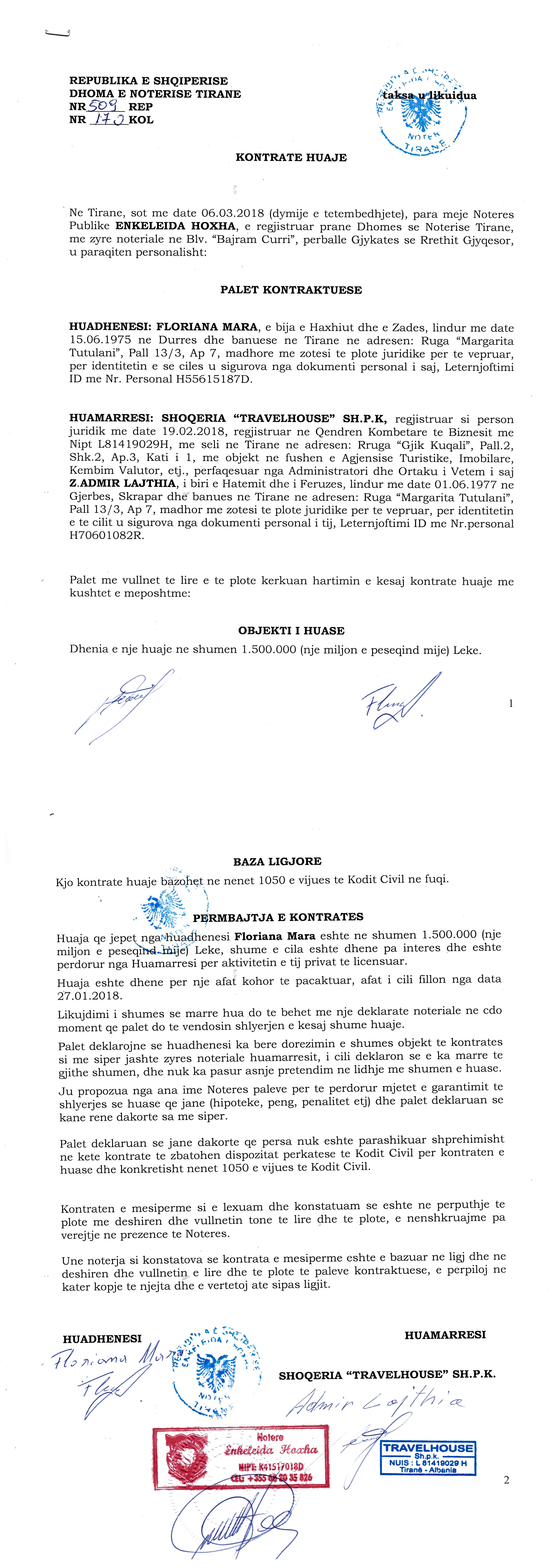 → Ekstrakt Historik i Regjistrit Tregtar date 01.09.2022 → Statuti i Shoqerise → Kontrate Huaje date 06.03.2018 → Vendim i Ortakut te Vetem, Zmadhim Kapitali date 16.03.2018 |