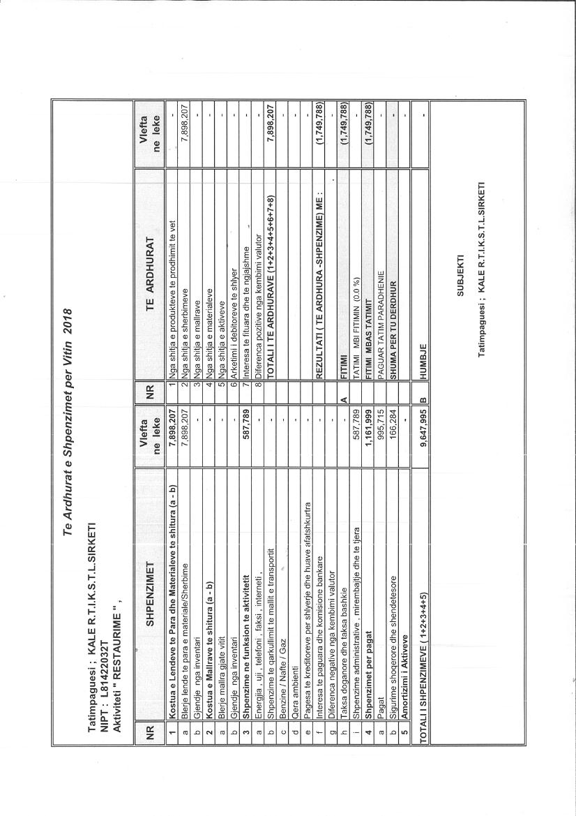 Xhiro Vjetore(Lekë) 2020:11 391 550,00 Xhiro Vjetore(Lekë) 2019:35 524 303,00 Xhiro Vjetore(Lekë) 2018:7 898 207,00 |
