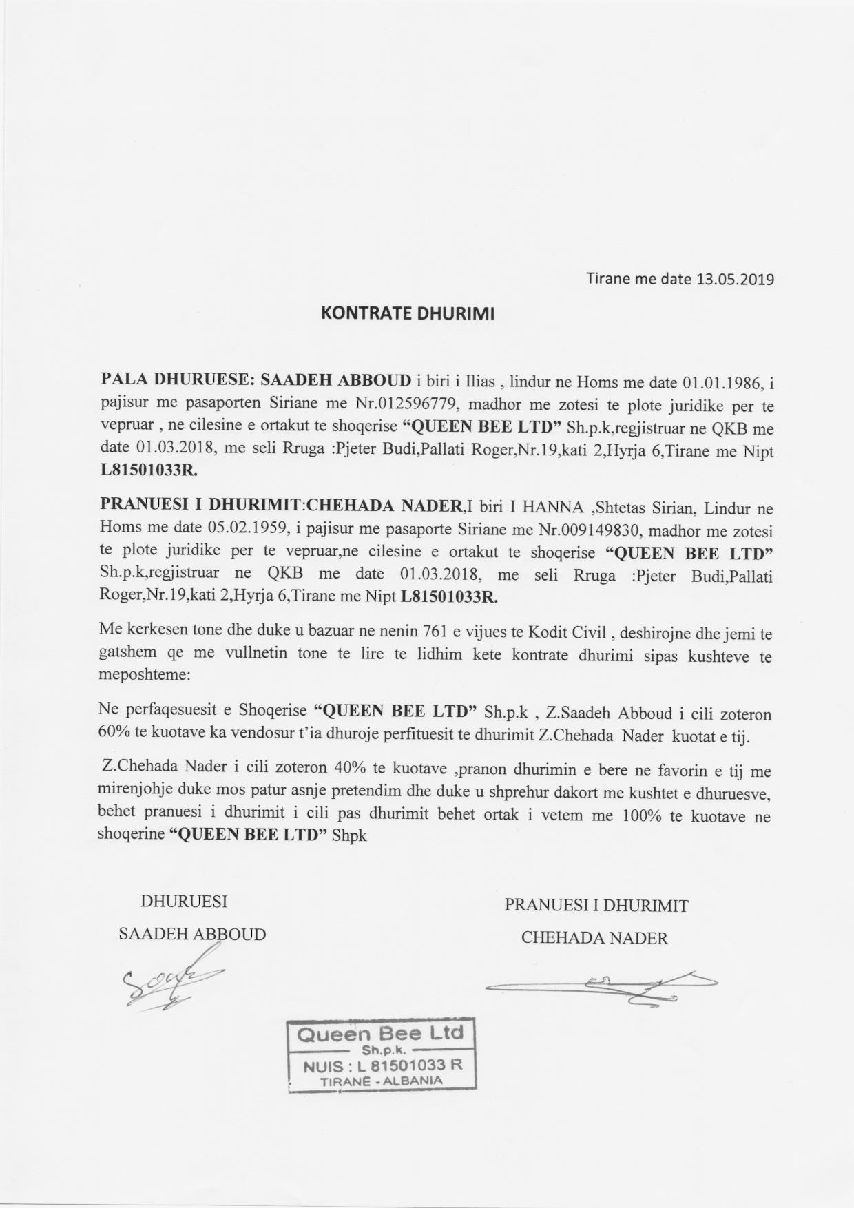 | Emërtime të tjera Tregtare: | Queen Bee Ltd |