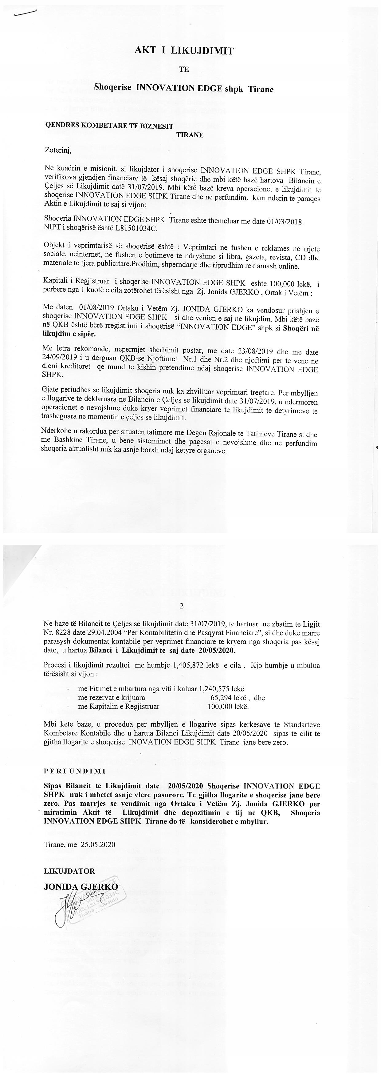 | Administrator: | Jonida Gjerko (Likuiduese) |