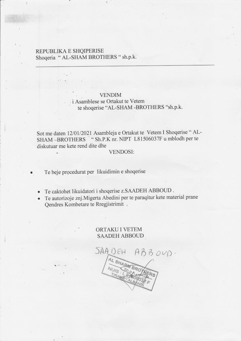 | Emërtime të tjera Tregtare: | AL SHAM BROTHERS |
