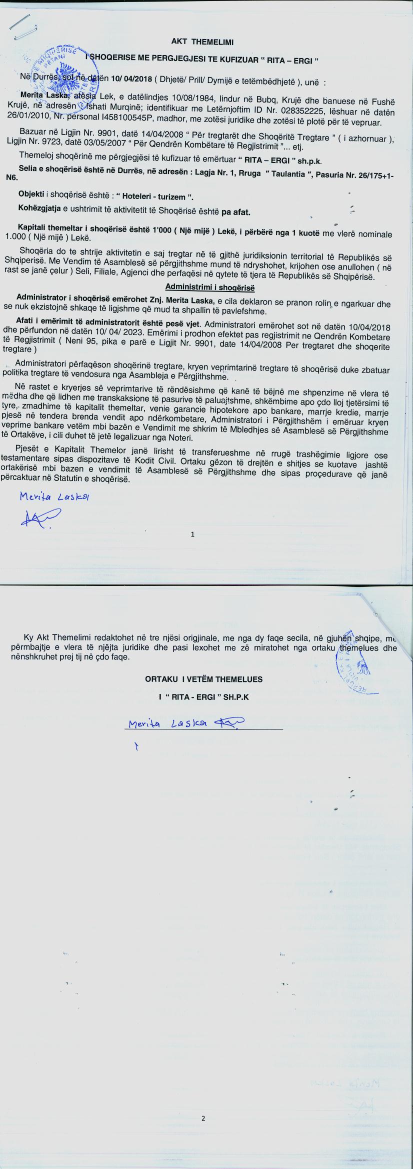 → Ekstrakti Historik i Regjistrit Tregtar date 03.10.2022 → Akt themelimi i Shoqerise |