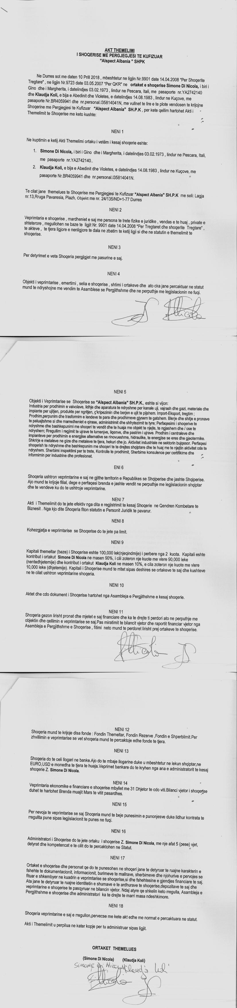 → Ekstrakti Historik i Regjistrit Tregtar date 08.10.2022 → Akt themelimi i Shoqerise |