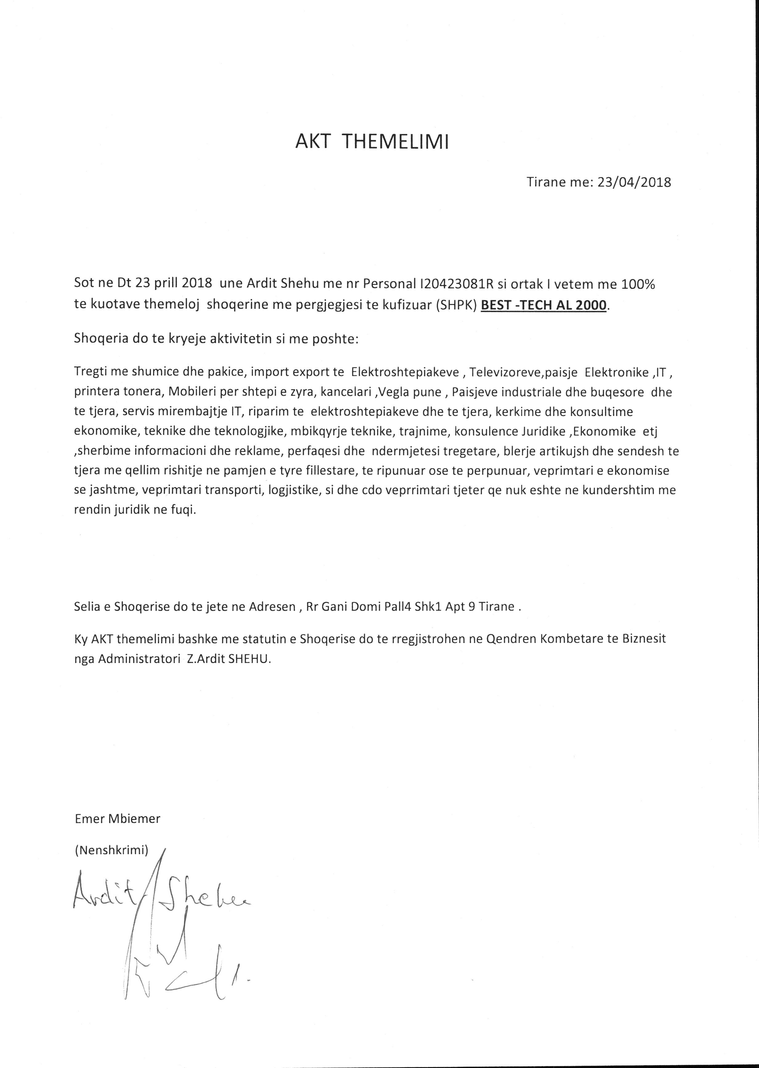 | Kapitali Themeltar(Lekë): | 5 000 000,00 |