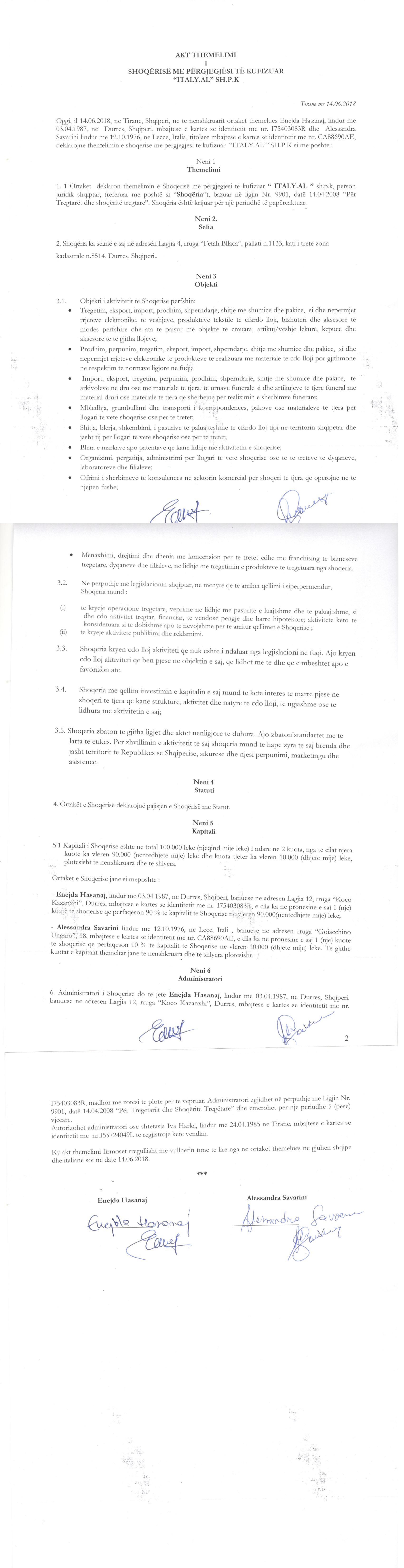 → Ekstrakt Historik i Regjistrit Tregtar date 27.10.2022 → Akt themelimi i Shoqerise → Ekstrakt Historik i Regjistrit te Pronarve Perfitues date 27.10.2022 |