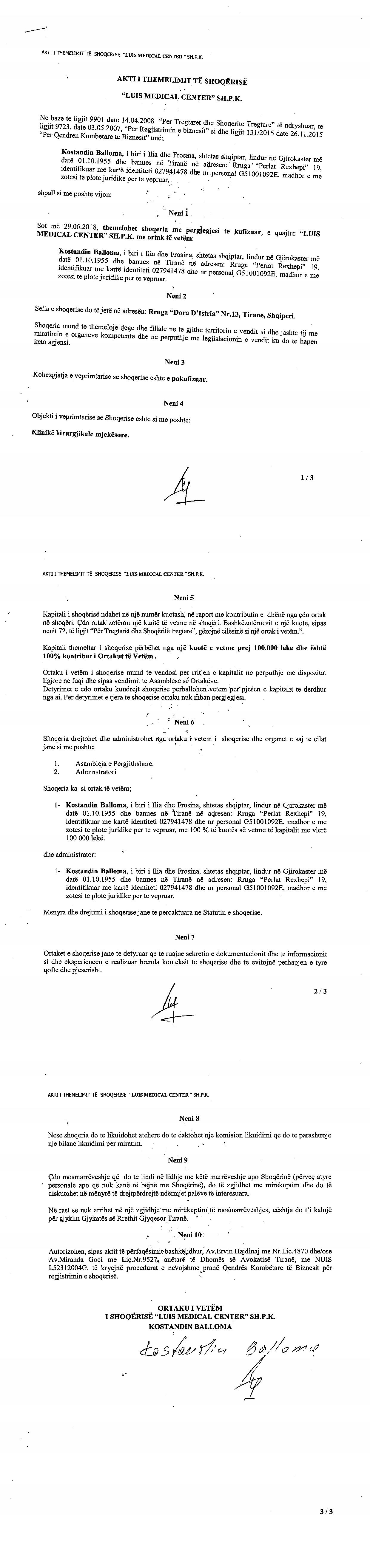 → Ekstrakt Historik i Regjistrit Tregtar date 02.11.2022 → Akt themelimi i Shoqerise |