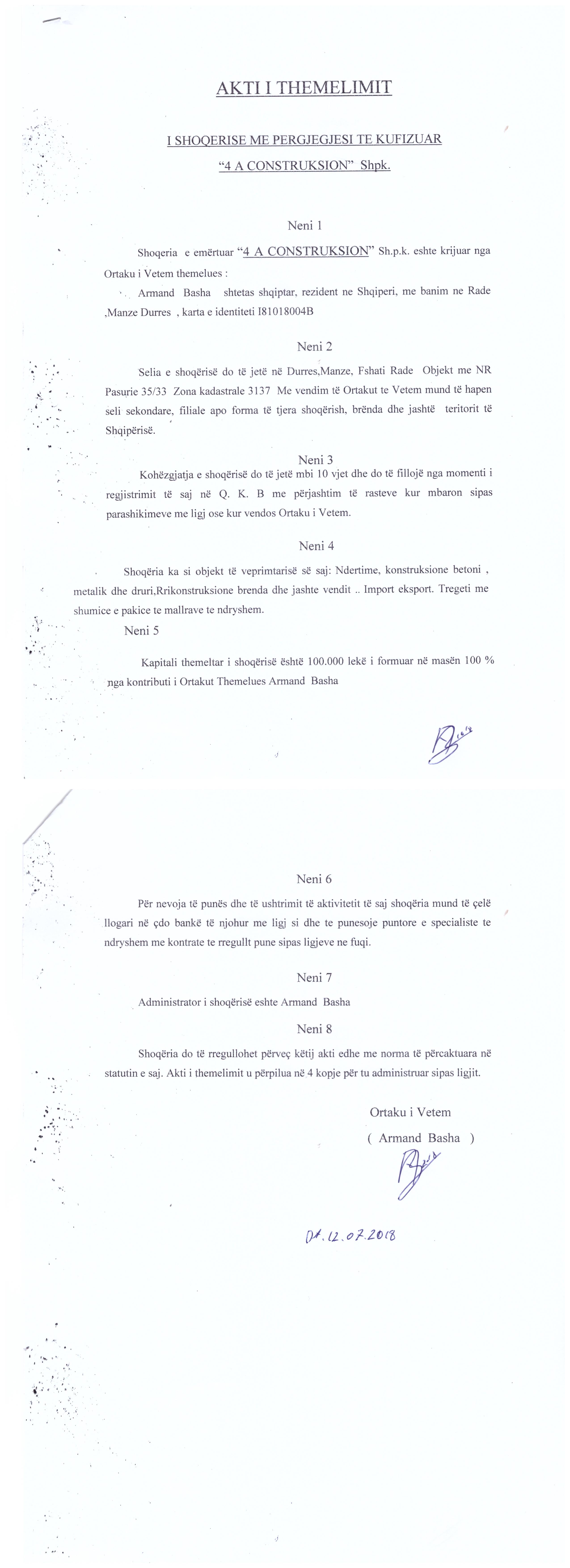→ Ekstrakt historik i regjistrit tregtar 10.02.2022 → Akti i themelimit |