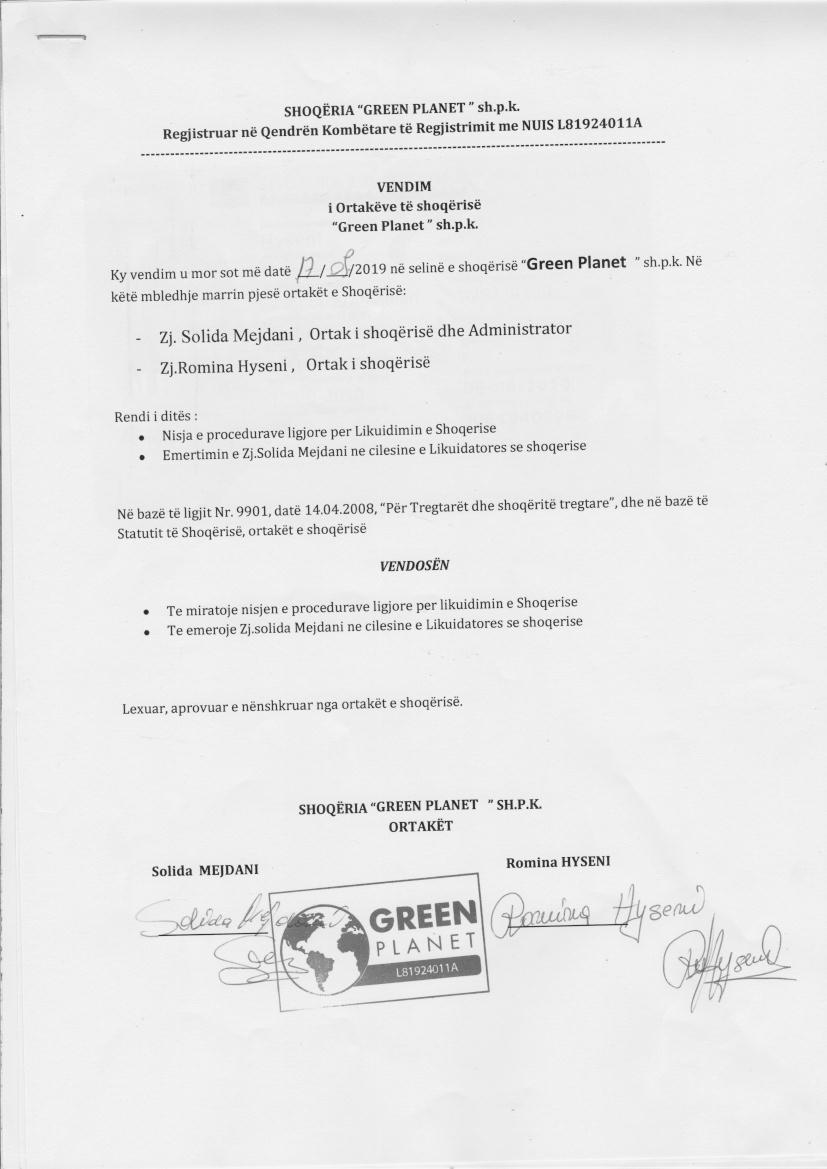 → Ekstrakti Historik i Regjistrit Tregtar date 09.11.2022 → Statuti i Shoqerise → Vendim i Asamblese se Ortakeve, Likuidim Shoqerie date 17.09.2019 |