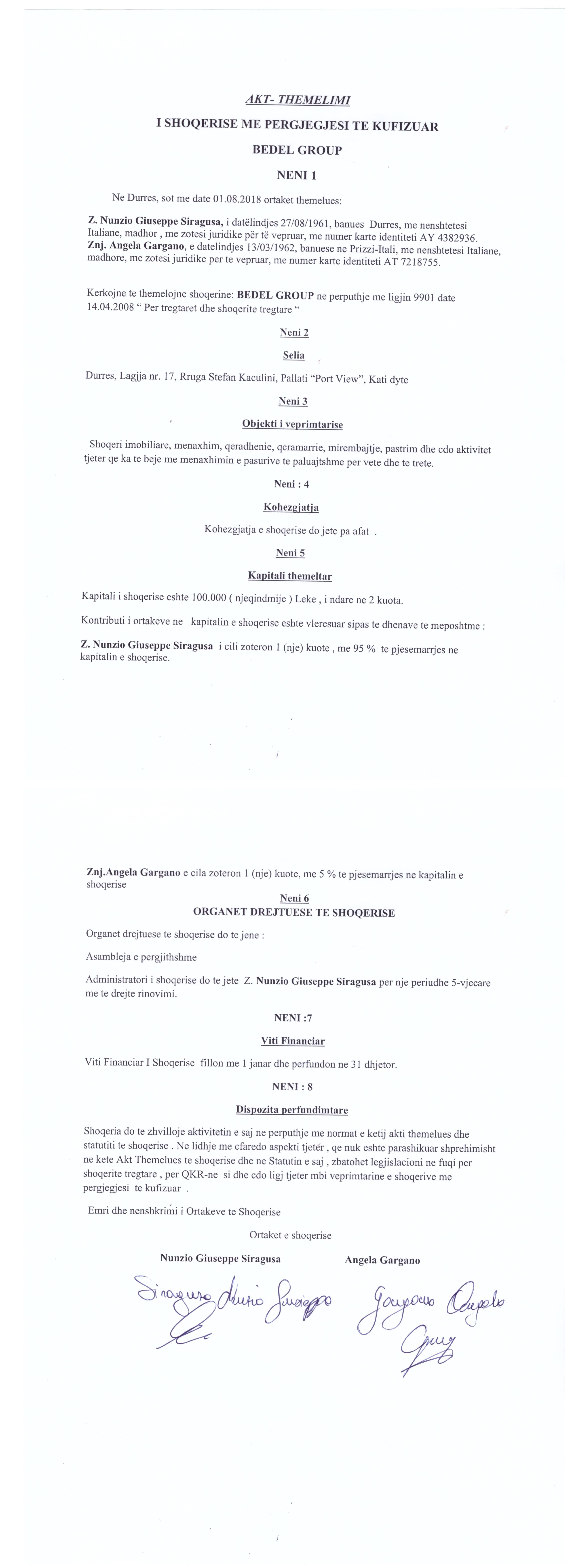 | Emërtime të tjera Tregtare: | BEDEL GROUP |