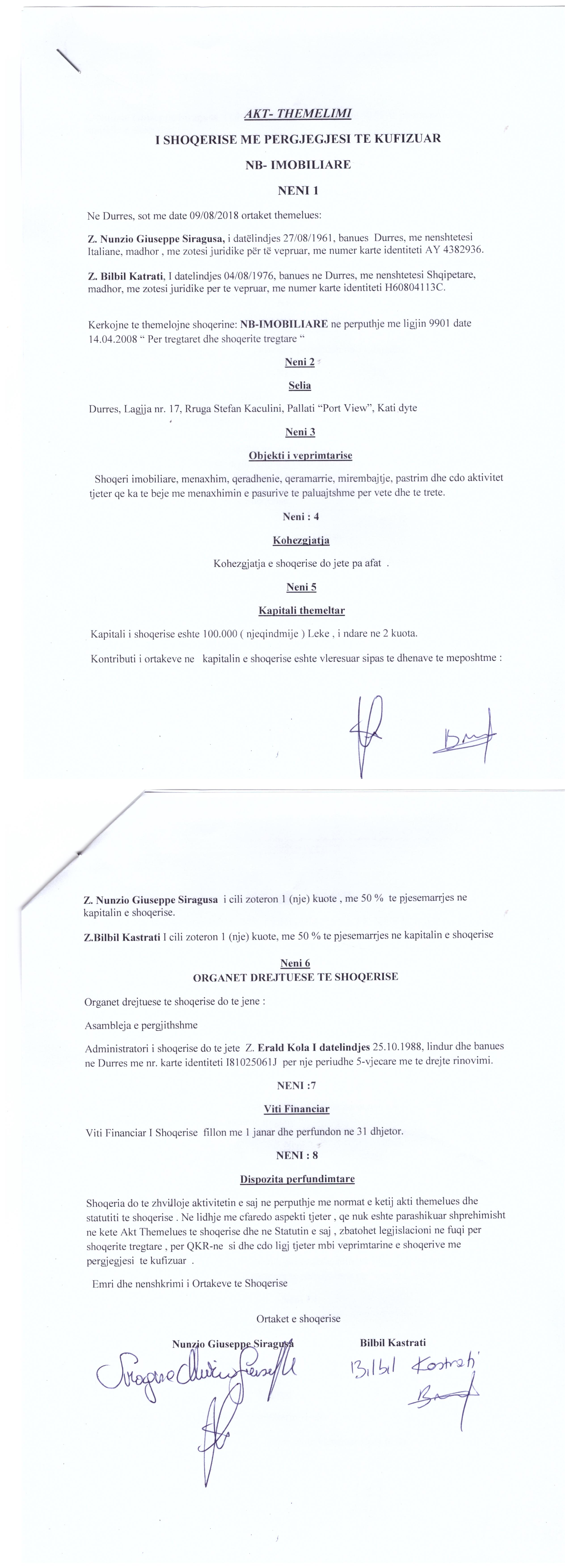 | Emërtime të tjera Tregtare: | NB- IMOBILIARE |