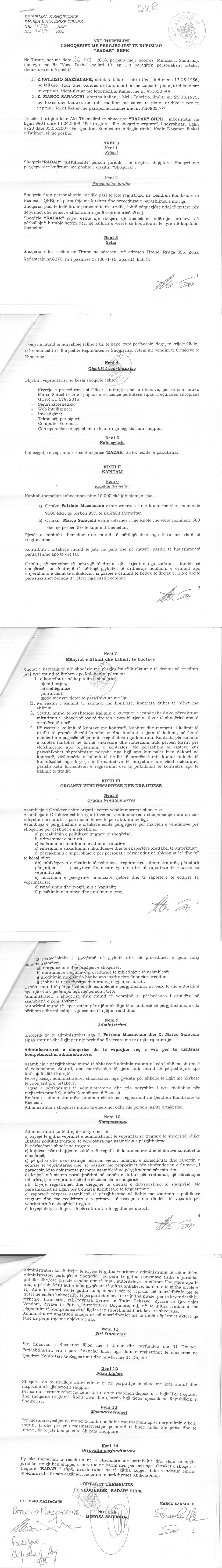 → Ekstrakti Historik i Regjistrit Tregtar date 07.12.2022 → Akt themelimi i Shoqerise → Ekstrakti Historik i Regjistrit te Pronareve Perfitues date 07.12.2022 |