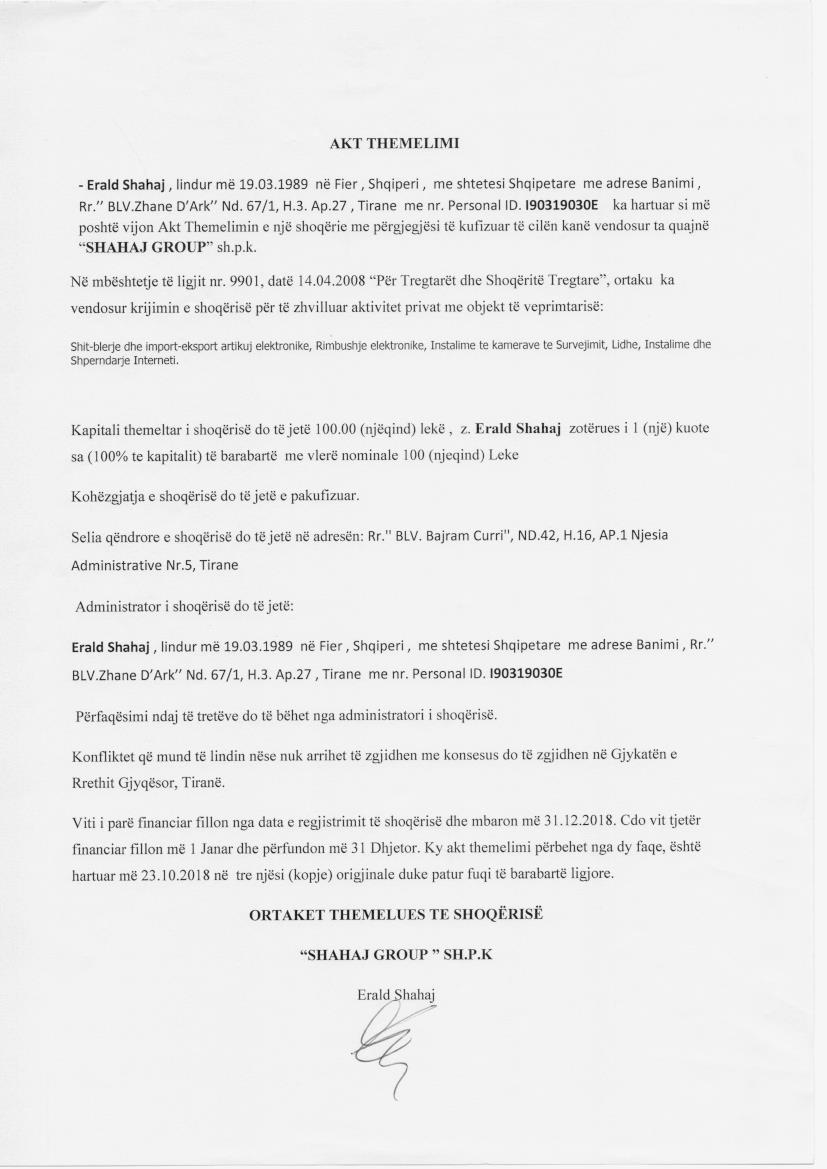 | Emërtime të tjera Tregtare: | SHAHAJ GROUP, Big Shop.Al ,Shahaj Net, Shahaj Computer&Security,Agjensia Little Star Njoftime Pafund |