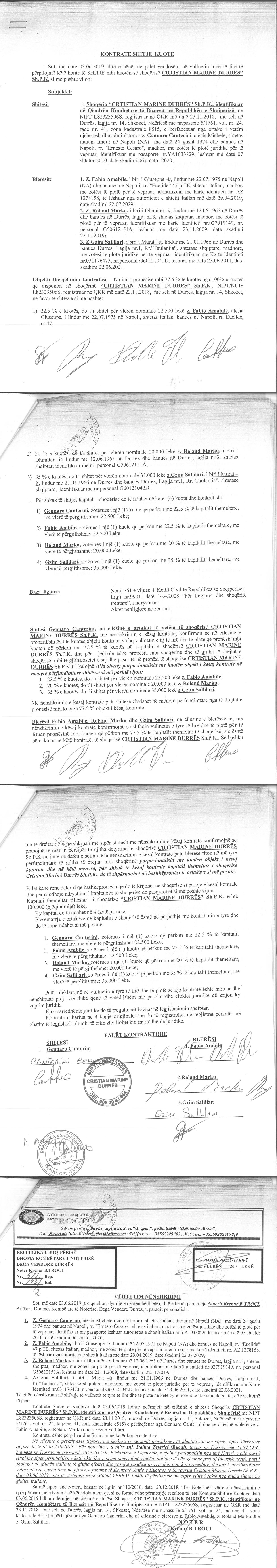 → Ekstrakti Historik i Regjistrit Tregtar date 21.12.2022 → Statuti i Shoqerise → Kontrate Shitje Kuotash date 03.06.2019 → Kontrate Shitje Kuotash date 01.11.2019 → Ekstrakti Historik i Regjistrit te Pronareve Perfitues date 21.12.2022 |