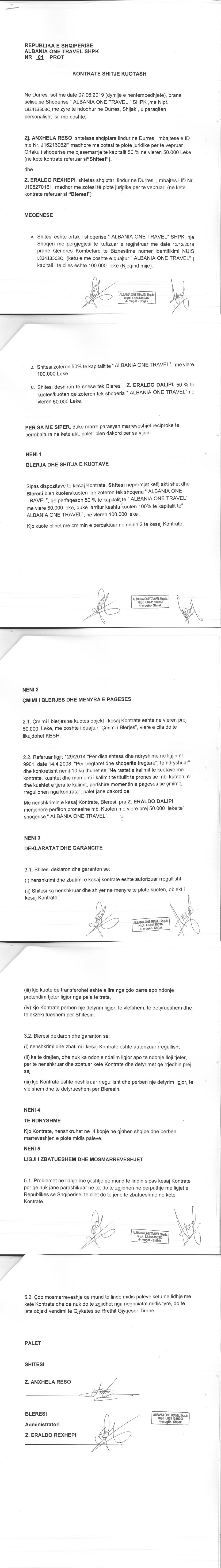 → Ekstrakti Historik i Regjistrit Tregtar date 23.12.2022 → Statuti i Shoqerise → Kontrate Shitje Kuotash date 07.06.2019 |