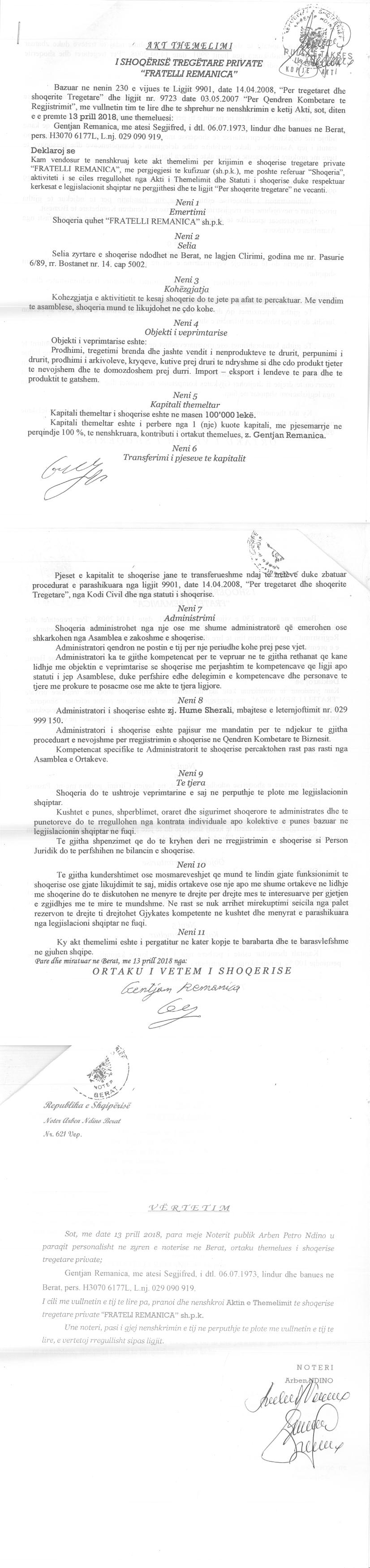 → Ekstrakti Historik i Regjistrit Tregtar date 10.10.2022 → Akt themelimi i Shoqerise |