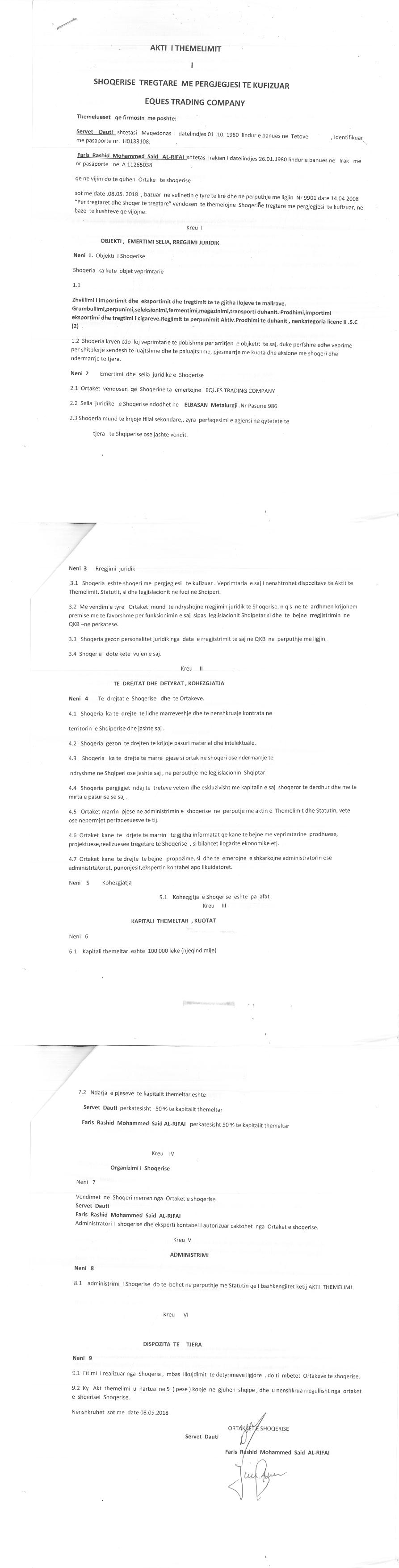 | Emërtime të tjera Tregtare: | EQUES TRADING COMPANY |