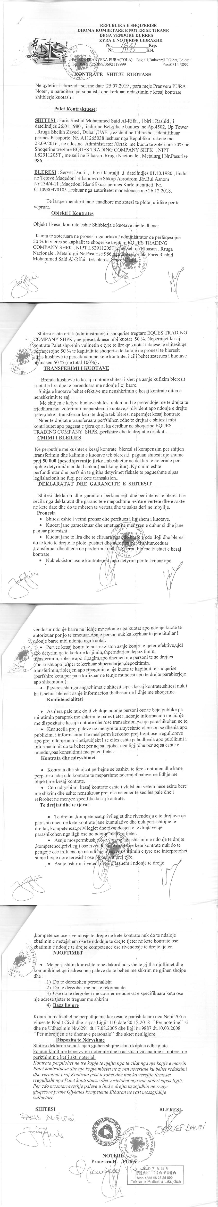 → Ekstrakti Historik i Regjistrit Tregtar date 15.10.2022 → Akt themelimi i Shoqerise → Kontrate Shitje Kuotash date 25.07.2019 |