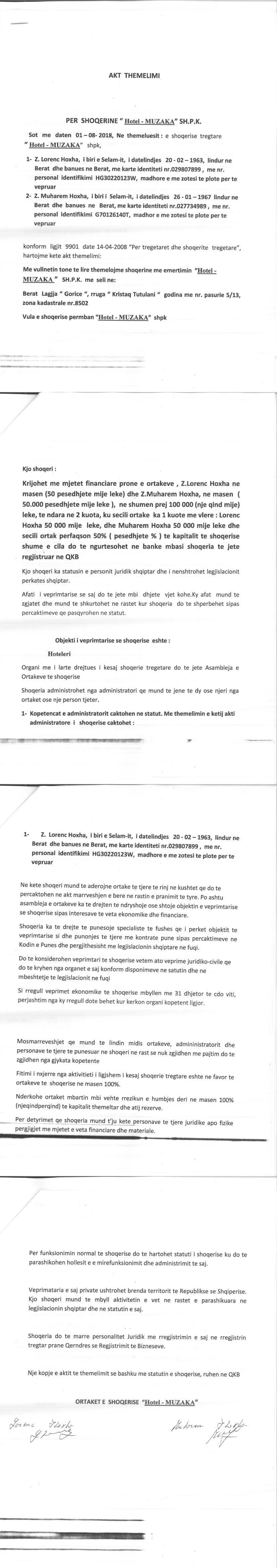 | Emërtime të tjera Tregtare: | Hotel - MUZAKA |