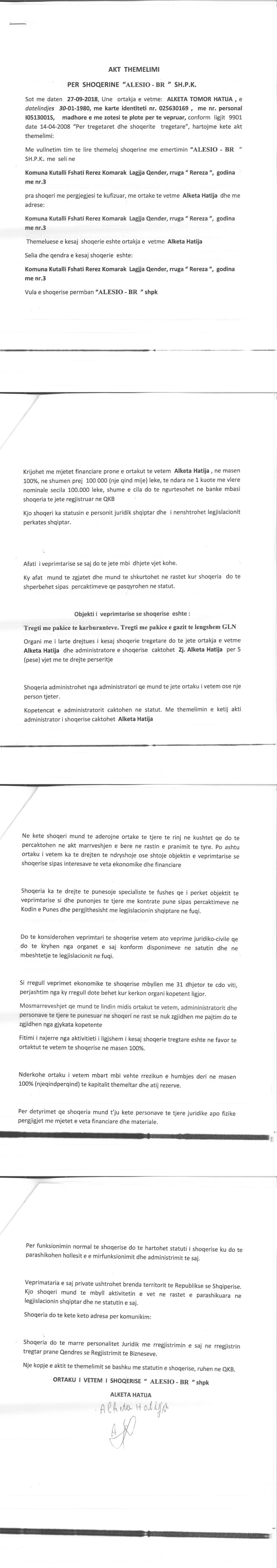 → Ekstrakti Historik i Regjistrit Tregtar date 06.12.2022 → Akt themelimi i Shoqerise |