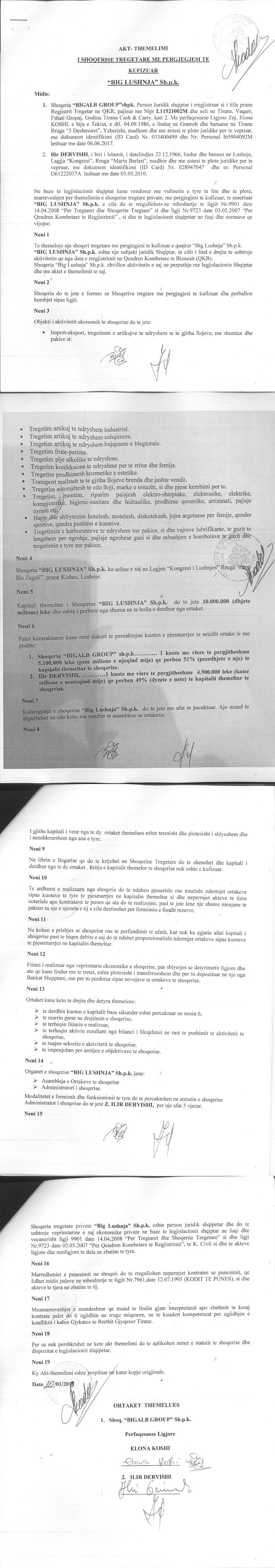 → Ekstrakti Historik I Regjistrit Tregtar date 18.09.2020 → Statuti I Shoqerise → Ekstrakt Historik i Regjistrit Tregtar date 14.08.2024 → Ekstrakt Historik i Regjistrit te Pronareve Perfitues date 14.08.2024 |