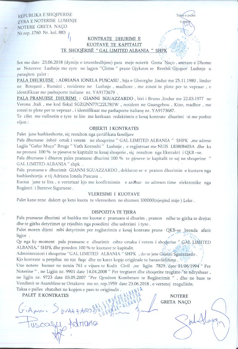 | Emërtime të tjera Tregtare: | GAL LIMITED ALBANIA |