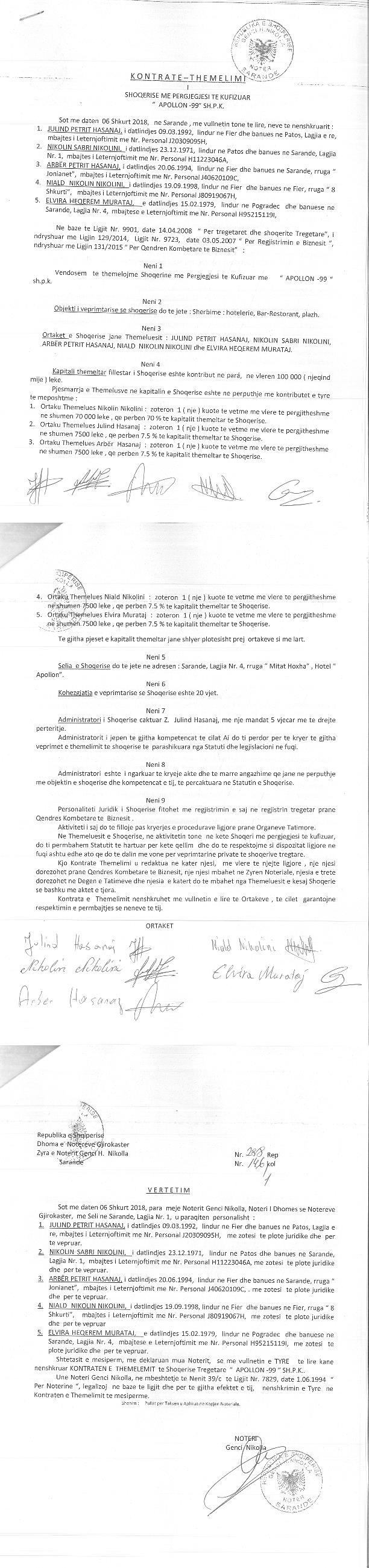→ Pasqyra e Te Ardhurave dhe Shpenzimeve 2018 → Akti I Themelimit te Shoqerise |