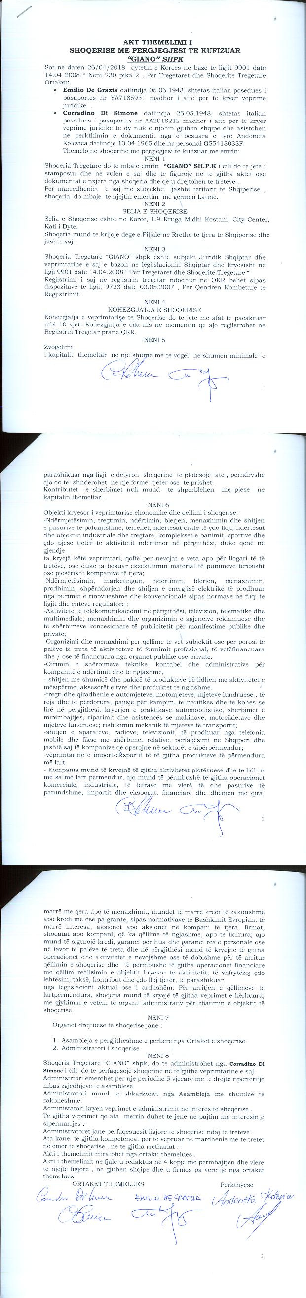 → Ekstrakti Historik i Regjistrit Tregtar date 11.10.2022 → Akt themelimi i Shoqerise |