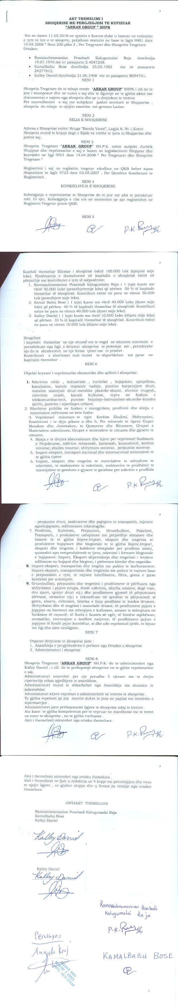 → Ekstrakt Historik i Regjistrit Tregtar date 21.10.2022 → Akt themelimi i Shoqerise → Kontrate Dhurimi Kuotash date 30.12.2019 → Ekstrakt Historik i Regjistrit te Pronareve Perfitues date 21.10.2022 |