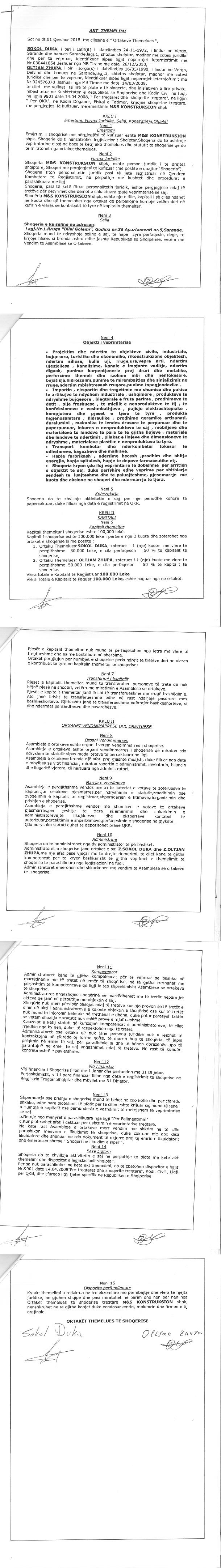 → Ekstrakt Historik i Regjistrit Tregtar date 24.10.2022 → Akt themelimi i Shoqerise → Kontrate Dhurimi Kuotash date 12.11.2019 |