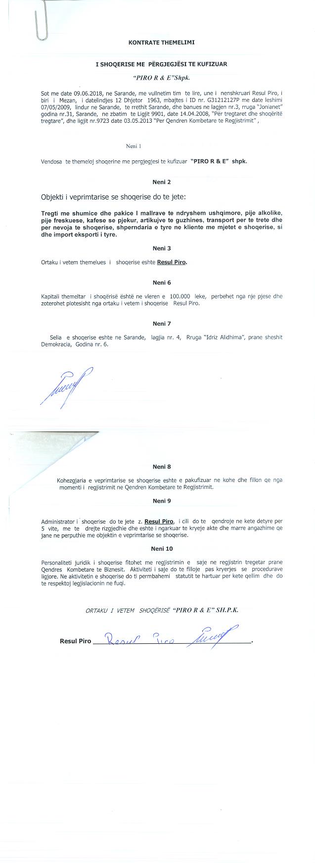 → Ekstrakt Historik i Regjistrit Tregtar date 26.10.2022 → Akt themelimi i Shoqerise |