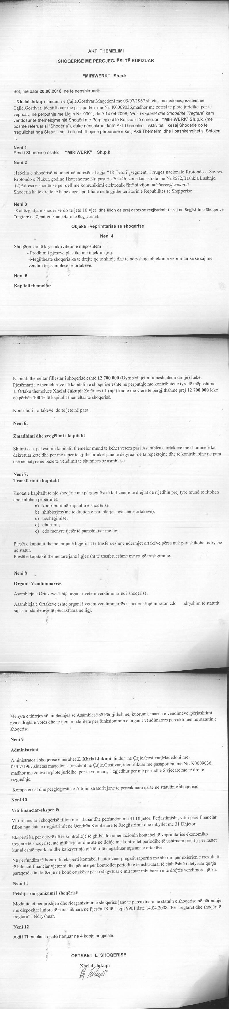 → Ekstrakt Historik i Regjistrit Tregtar date 28.10.2022 → Akt themelimi i Shoqerise → Ekstrakt Historik i Regjistrit te Pronarve Perfitues date 28.10.2022 |