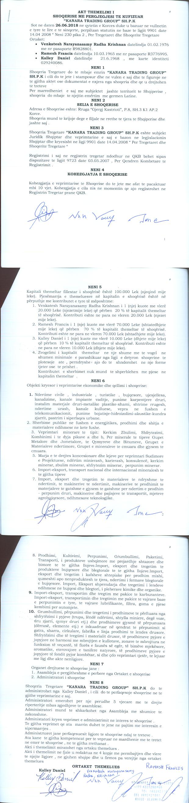 → Ekstrakti Historik i Regjistrit Tregtar date 03.11.2022 → Akt themelimi i Shoqerise → Ekstrakti Historik i Regjistrit te Pronareve Perfitues date 03.11.2022 |