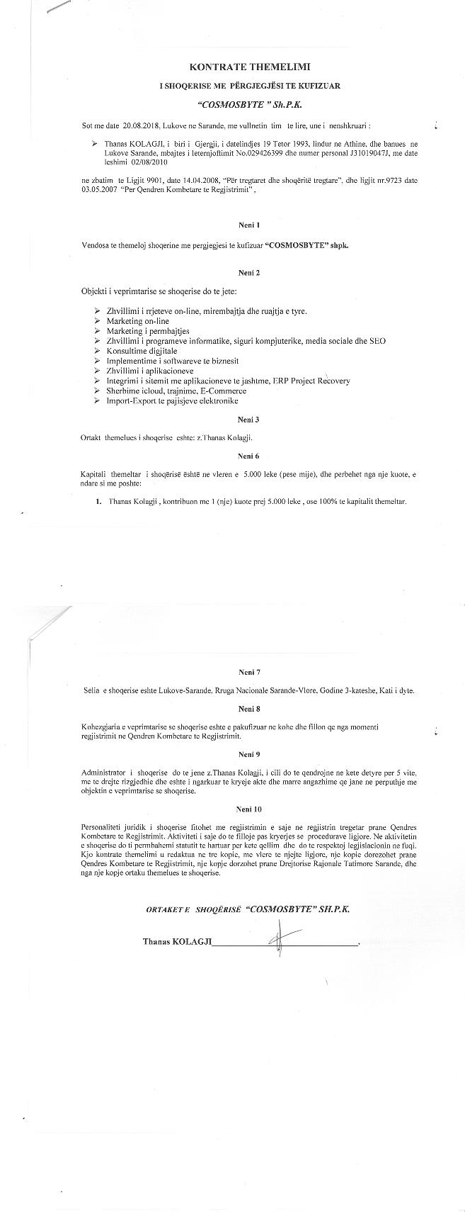 → Ekstrakti Historik i Regjistrit Tregtar date 15.11.2022 → Akt themelimii Shoqerise |