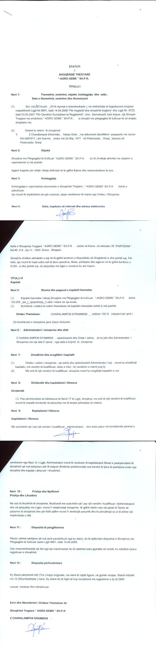 → Ekstrakti Historik i Regjistrit Tregtar date 18.11.2022 → Statuti i Shoqerise → Ekstrakti Historik i Regjistrit te Pronare Perfitues date 18.11.2022 |
