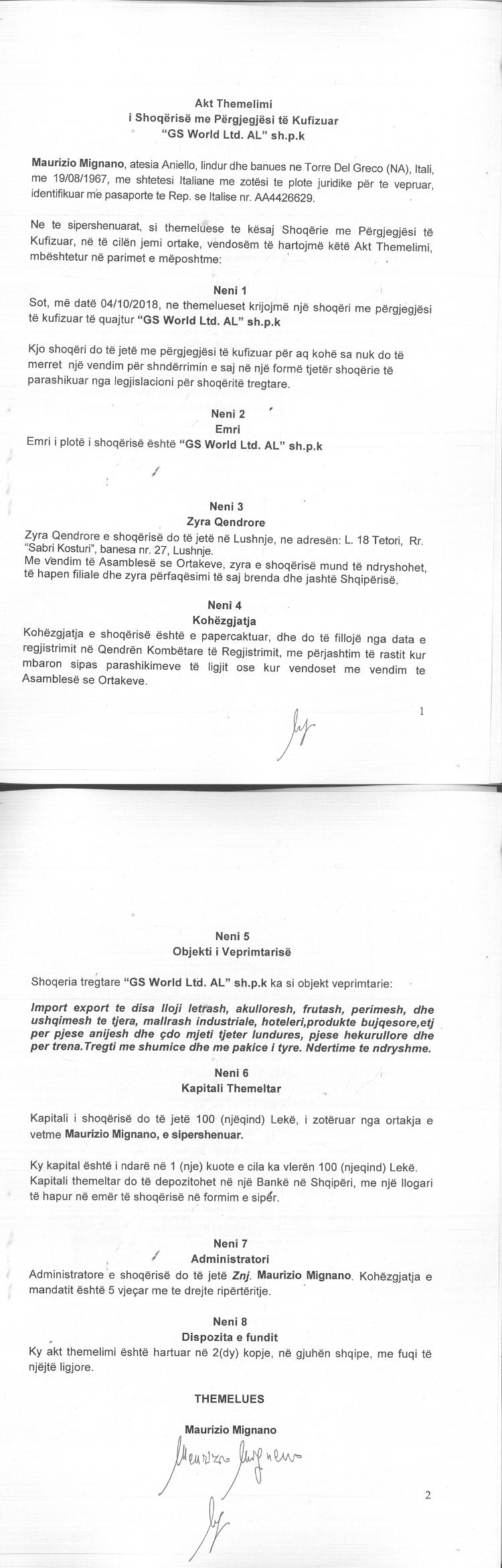 Emërtime të tjera Tregtare: GS World Ltd. AL
