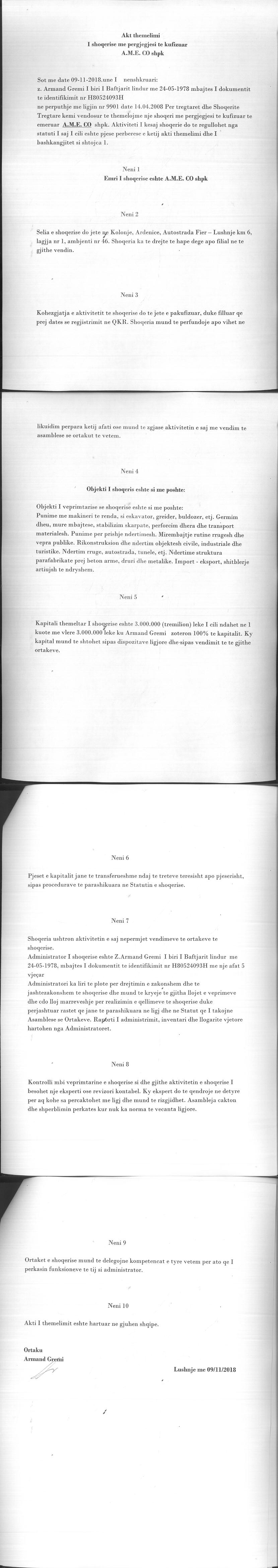 → Ekstrakti Historik i Regjistrit Tregtar date 19.12.2022 → Akt themelimi i Shoqerise |