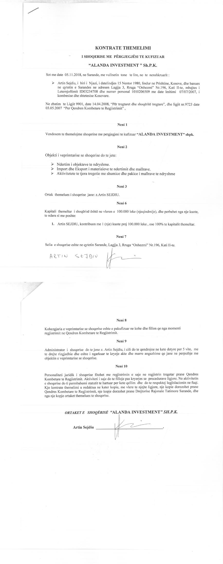 | Kapitali Themeltar(Lekë): | 100 000,00 |