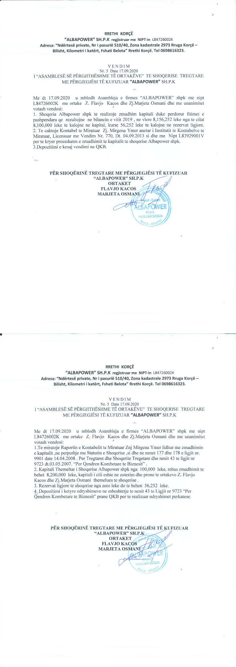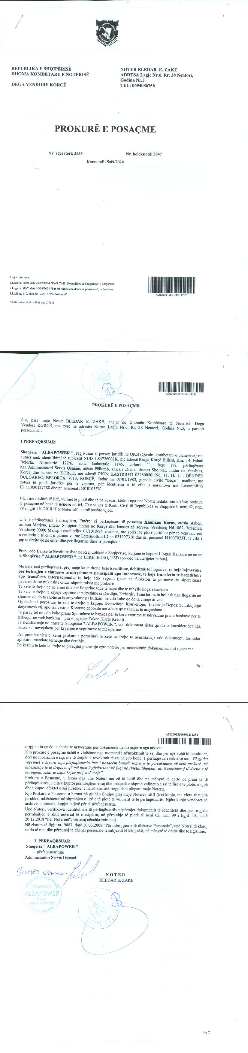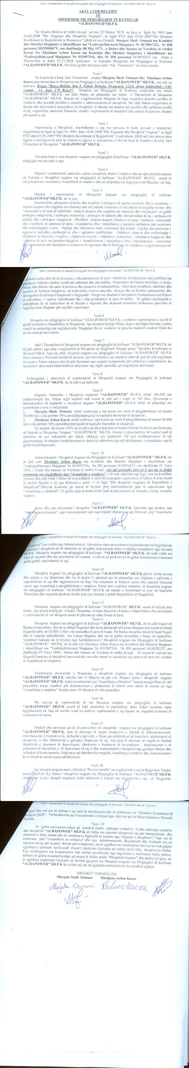 " ALBAPOWER " (shoqeri e perthithur nga "Xh.F.Kacos"sh.p.k. me NIPT L54008001D)