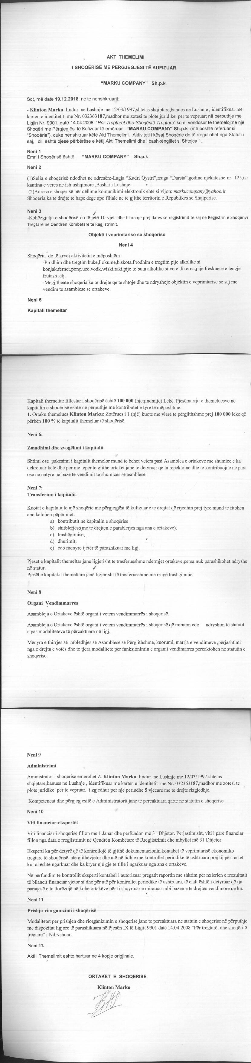 | Emërtime të tjera Tregtare: | MARKU COMPANY |