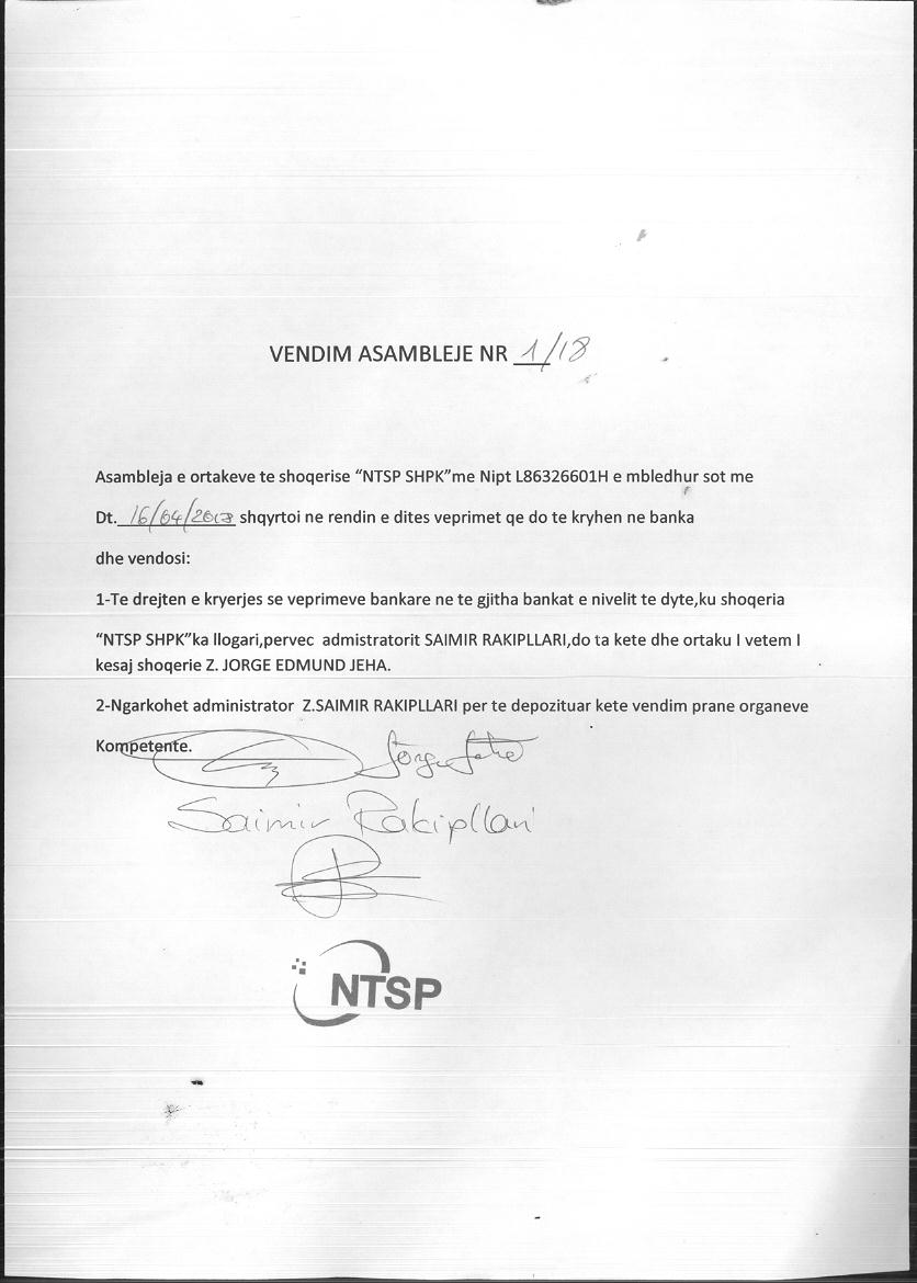 → Ekstrakt Historik i Regjistrit Tregtar date 27.08.2022 → Statuti i Shoqerise → Vendim i Ortakut te Vetem, date 16.04.2018 → Kontrate Shitje Kuotash date 26.06.2020 → Kontrate Shitje Kuotash date 19.10.2020 → Vendim i Ortakut te Vetem, Zmadhim Kapitali date 21.05.2021 → Kontrate Shitje Kuotash date 11.06.2021 → Ekstrakt Historik i Regjistrit Tregtar date 09.08.2023 → Ekstrakt Historik i Regjistrit Tregtar date 19.04.2024 → Kontratë Shkëmbimi Kuotash datë 30.01.2024 → VENDIM Nr. 190, Datë 21.07.2022 MBI LICENCIMIN E SHOQËRISË “NTSP” SH.P.K., NË VEPRIMTARINË E PRODHIMIT TË ENERGJISË ELEKTRIKE NGA CENTRALI FOTOVOLTAIK, ME VENDNDODHJE NË ZONËN BITINCKË, BILISHT, QARKU KORÇË, ME KAPACITET TË INSTALUAR 2 MW |