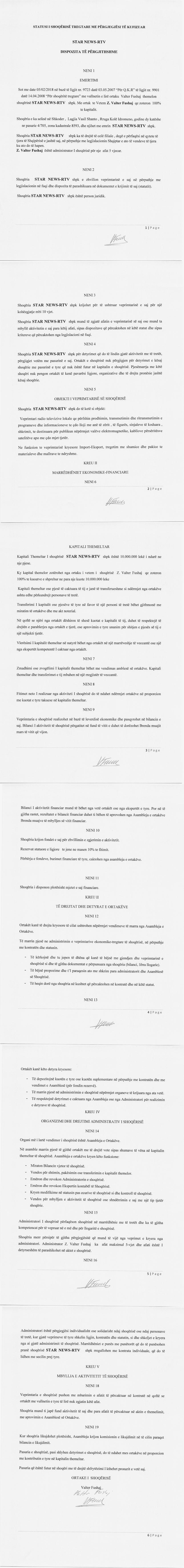 | Emërtime të tjera Tregtare: | STAR NEWS-RTV |