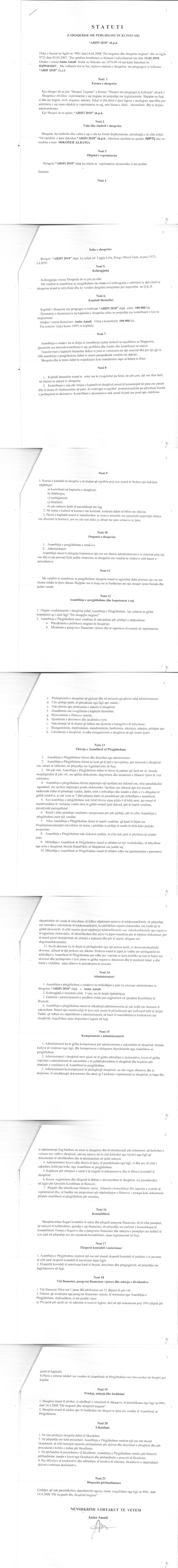 → Ekstrakti Historik I Regjistrit Tregtar date 26.11.2020 → Statuti I Shoqerise |